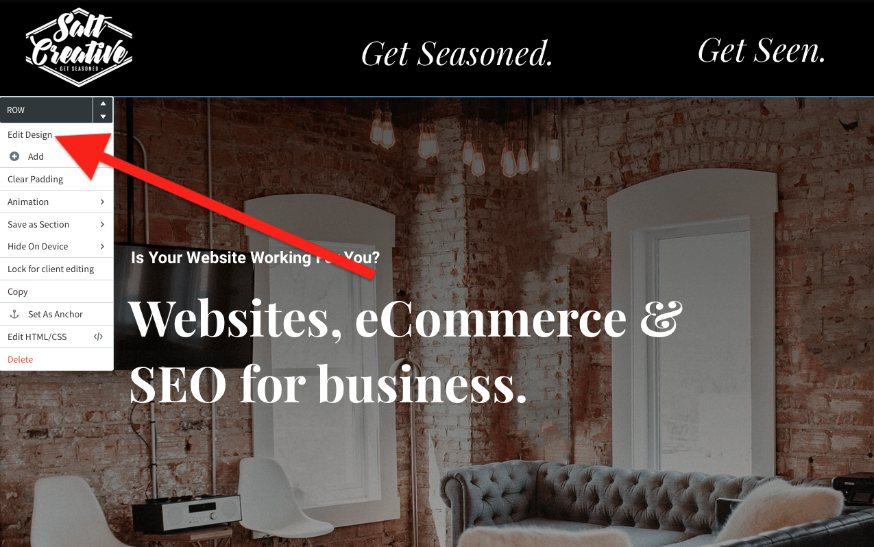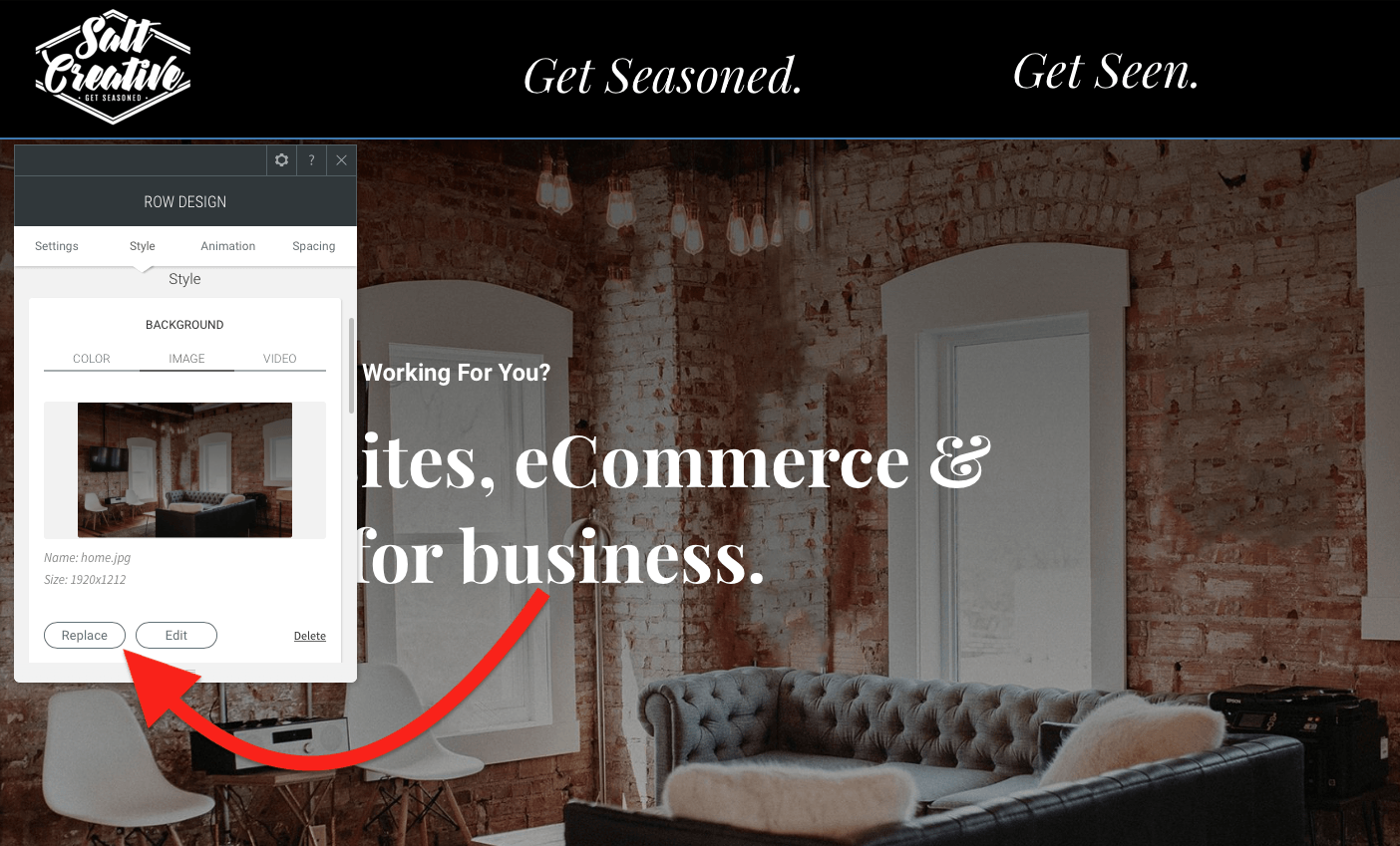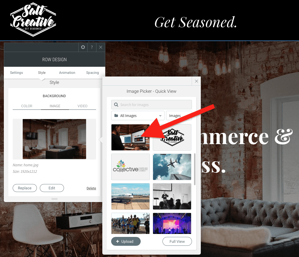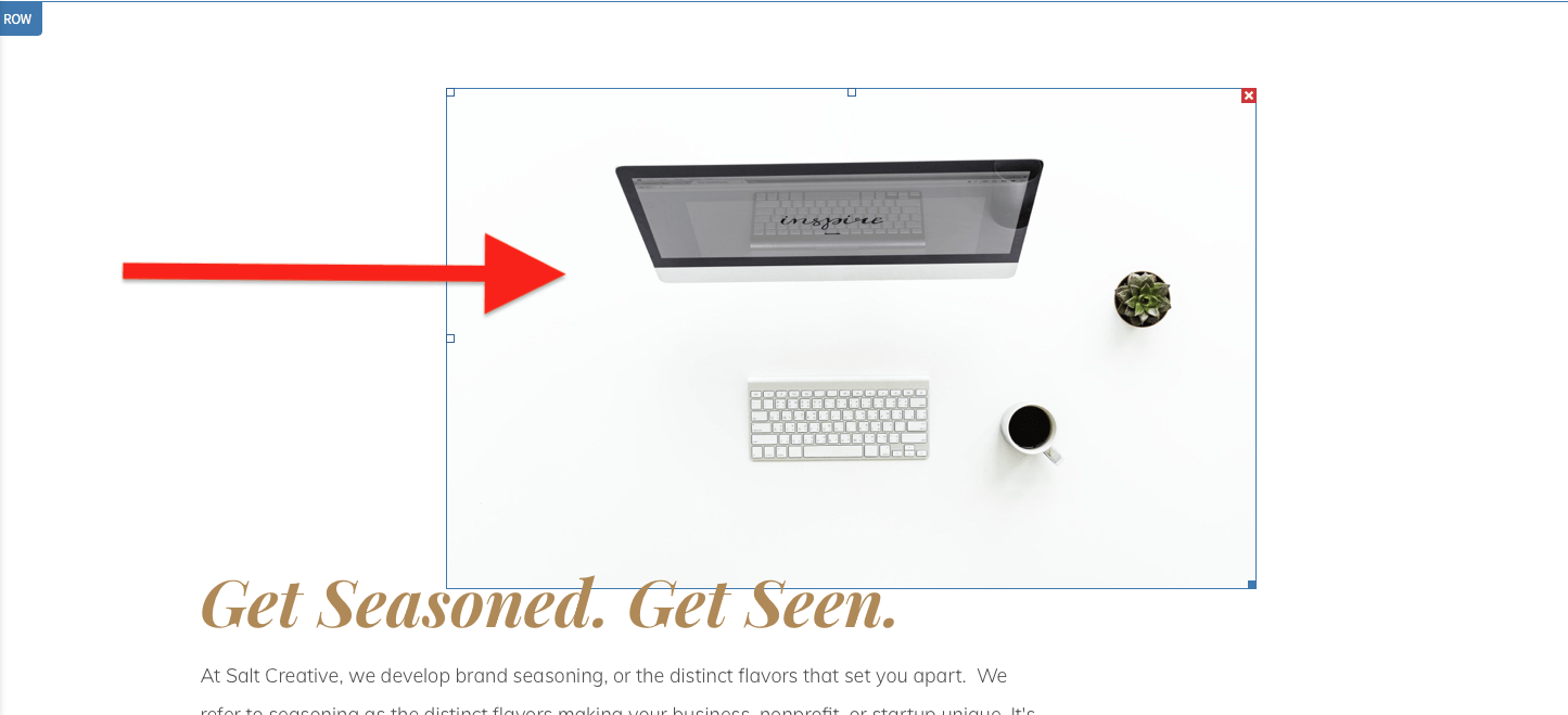 Hover over the image or banner you would like to change. A blue box should appear. Click ROW
