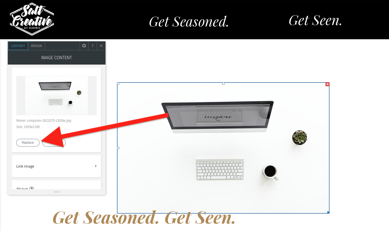 The Image Picker box will appear. Select the new image or upload your new image by selecting + Upload. Please use high resolution images. High resolution images are 1500px - 2500px in width.